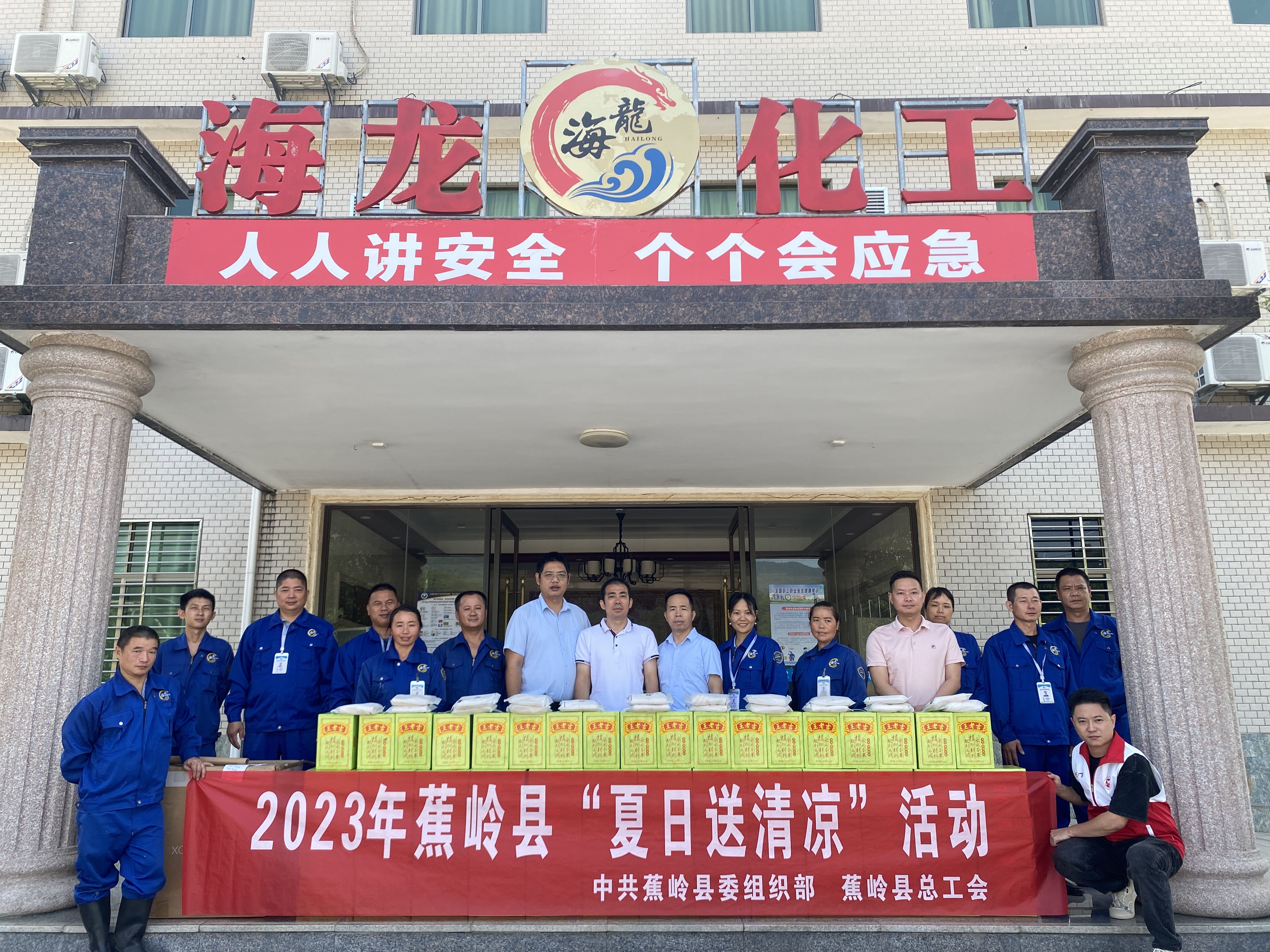 夏日炎炎,高溫來(lái)襲,自入夏以來(lái),全國(guó)各地高溫預(yù)警不斷。為了確保職工平安度夏,保護(hù)高溫天氣下奮戰(zhàn)在一線的廣大職工身心健康,有效預(yù)防和控制職業(yè)性中暑事件,蕉嶺縣總工會(huì)常務(wù)副主席林敦權(quán)、權(quán)維部部長(zhǎng)丘仕強(qiáng)等領(lǐng)導(dǎo)一行到海龍化工開(kāi)展2023年蕉嶺縣“夏日送清涼”活動(dòng)。