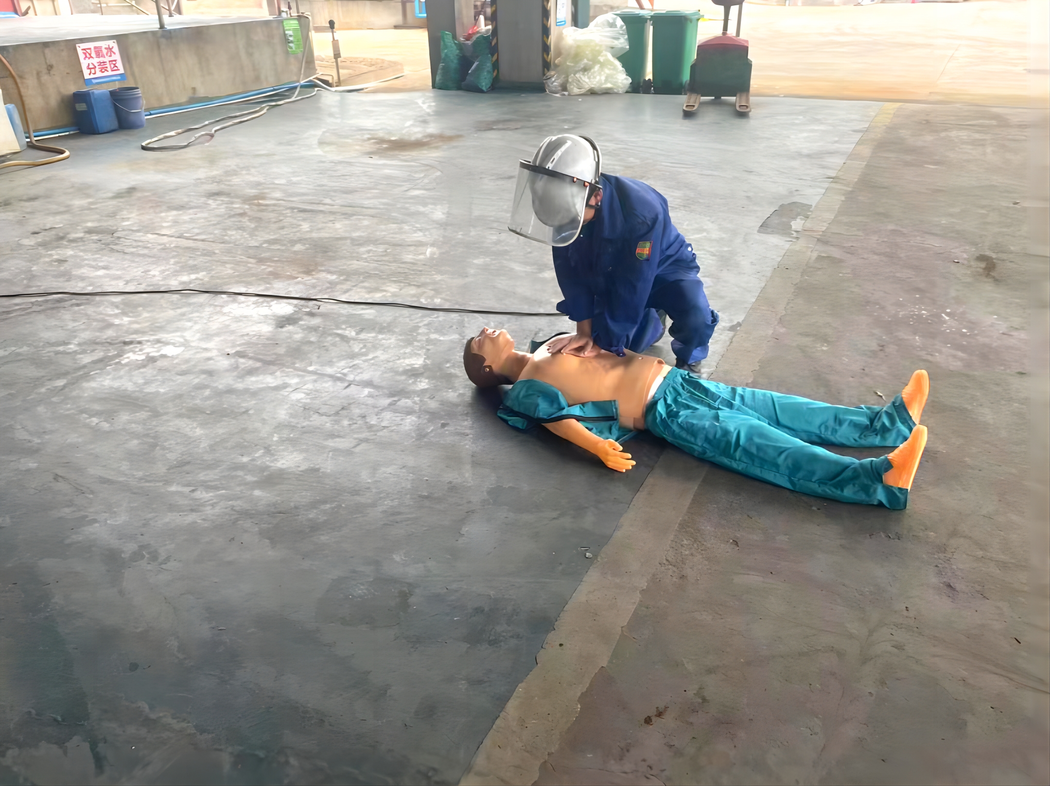 人員觸電演練:附近正在作業(yè)的同事發(fā)現(xiàn)有人員觸電,迅速斷開(kāi)該電纜線電源開(kāi)關(guān),隨后立即組織人員報(bào)120并對(duì)受傷者進(jìn)行心肺復(fù)蘇,,并轉(zhuǎn)移至廠區(qū)外等待120急救車(chē)。